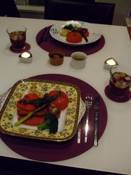 「夜は野菜しか食べない」という彼の言葉通り、この日は野菜だけのシンプルな食卓に。