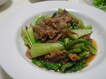 牛肉と青梗菜のオイスター炒め。ごはんにあうおかずです。