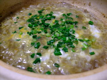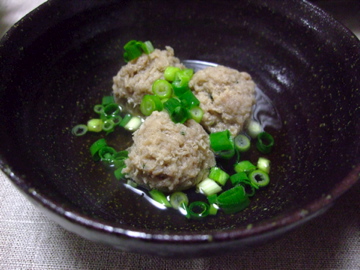 まずはスープでつくねを煮て、ねぎを加えていただきます。