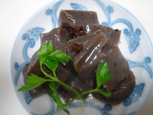 ①こんにゃくは一口大に手でちぎり、茹でる。