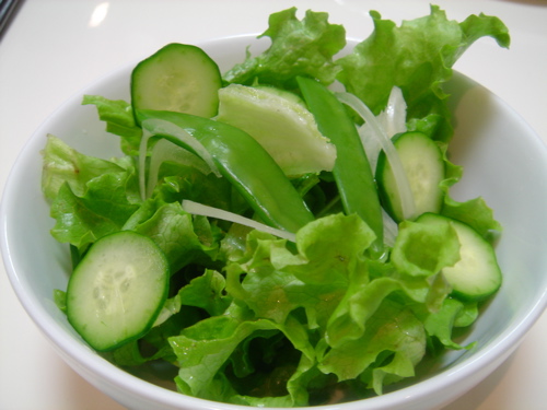 冷蔵庫にあるものでつくりました。冷蔵庫の叙々苑ドレッシングでいただきました。