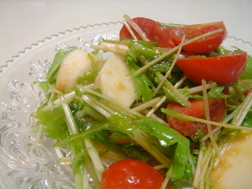 水菜とトマトを使って「かぶのフレッシュサラダ」にしました。