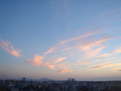 青空に浮かんだ白い雲が夕日に照らされてオレンジ色に染まっていました。