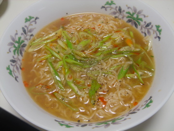 インスタントラーメンのチャルメラ。すごーく久しぶりに買っちゃいました。しかも5袋パック。うちの隣のスーパーで5袋パックが188円で売ってたんです。1袋40円以下ですよ。あらら、安いのね〜とつい手が伸びてしまいました。