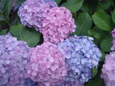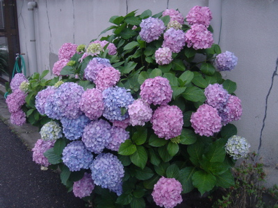 花は大きいのに色はうすくて、でも私の好きなピンクやパープルで。子供の頃には紫陽花の近くにはかたつむりがいたのでつかまえたりしたことを覚えています。(今でもかたつむり、いるのかな?)