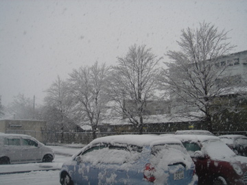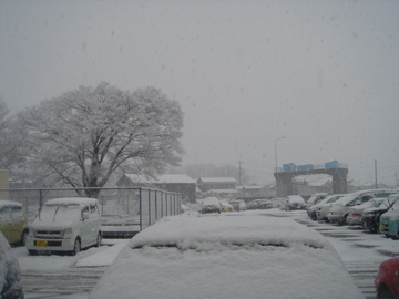 昨日は朝から雪がちらちら降っていましたが、午前中はさほど強くもありませんでした。降っては溶け、を繰り返していたので甘く見ていましたが、午後になってその勢いは増し、おそらく気温も下がったのだと思いますが、午後3時にはこんな景色に変わっていました。