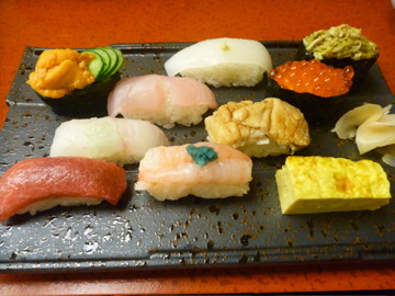 トロ、甘エビ、穴子など高級ネタが9貫。