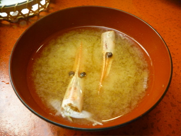 お椀は海老の頭のだしがたっぷり入ったお味噌汁。