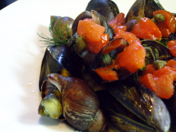 貝がたっぷり入ったワイン蒸しはシャンパンによく合いました。