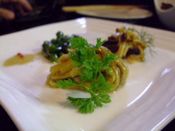 焼きなす、きのこ、ししとうがそれぞれ違う味付けでマリネされていました。