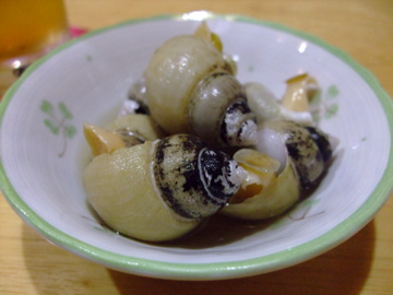 お通しはバイ貝煮。これも新潟の定番メニューです。