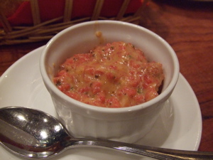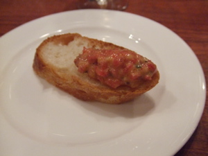 このお店はお通しがフランスパン(おかわり自由)なのでパンにつけていただきました。おいしいです。