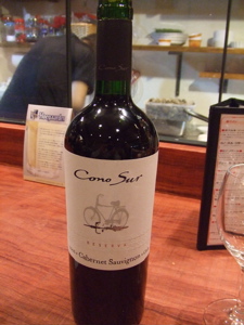 お酒はいつの間にか赤ワインに変わりました。チリ産のカベルネ・ソーヴィニオンです。ボトルで2200円とはお安い。
