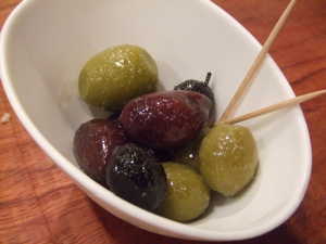パエリアはオーダーしてから40分くらいかかるというので、オリーブを食べながらワインを飲んでパエリアを待ちました。大きなオリーブでおいしかったです。