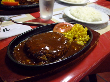 ジュージューと音を立ててハンバーグが運ばれてきました。