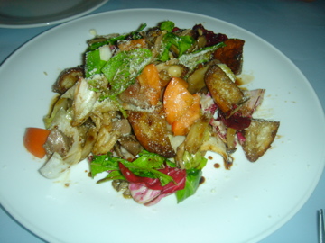 パンツァネッラの意味がわからずオーダーの時に聞いたら「何といいますかパンが入っていまして〜」との回答。焼いたバケットのようなパンが一緒にたっぷりの野菜と一緒に入ったサラダのようなお料理でした。
