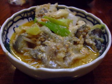 あんこうのガラとねぎを味噌(肝も入っているとのこと)味で煮たもの。