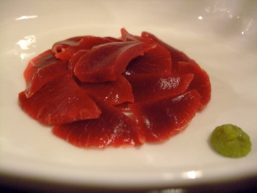 もも肉のお刺身なのですが、表面を軽く炙ってあるんです。