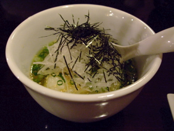 最後は鶏スープのたっぷりかかったスープ茶漬けと…