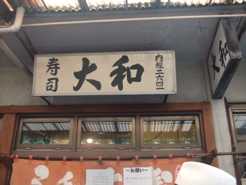 右の写真のように狭いのですが、その中の1軒がお目当ての大和寿司です。