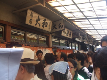 土曜の朝新幹線に乗り込み、私たちが最初に向かったのが築地市場です。