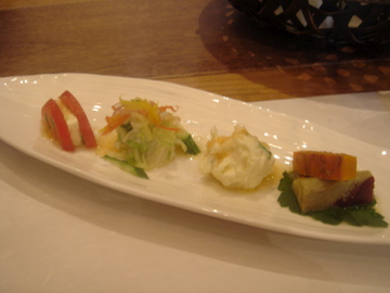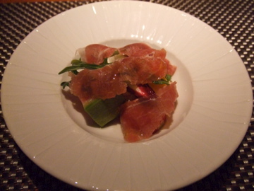 これはオーダーしてないもの。大きめに切られたかぶなどの野菜を生ハムの塩気とオリーブオイルでいただくシンプルなものでした。