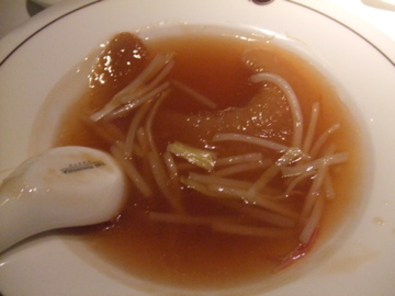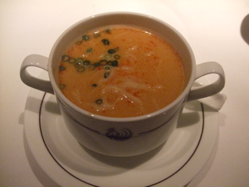 とろみのかかったコーンスープ。蟹肉とヤングコーンの歯ごたえがおもしろい1品でした。