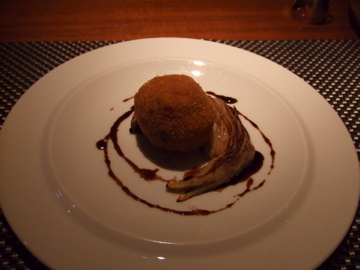 チーズを鶉で巻いて揚げたものでした。割るととろ〜っとしたチーズがたっぷり。