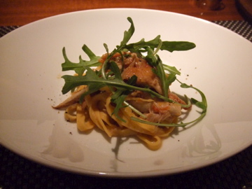仔兎と新牛蒡・野生ルッコラのタリアテッレ。