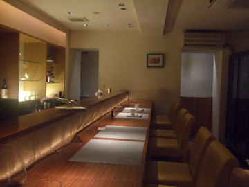 中も狭いのですが、カウンターに座ってビールと「おまかせ」をオーダーします。