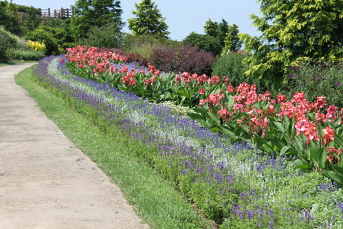 敷地内は遊歩道が完備されていて、斜面の上からお花をみたり、下に降りて道沿いに咲くお花を楽しんだりすることができます。