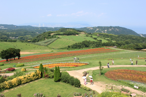 あわじ花さじきは面積15ha。歩いてみるにはちょうどいい広さだと思いました。海と山、そして花や緑が広がったのんびりとした雰囲気が居心地よかったです。
