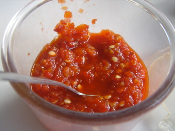 テーブルにはこんな調味料が。唐辛子の酸っぱい香りがします。