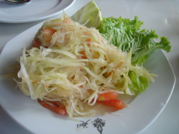 青パパイヤのサラダです。このパパイヤはノースショアでとれたものだそうです。