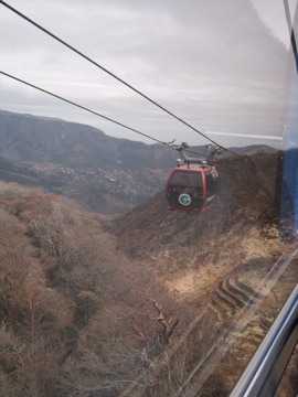 ロープウェイからは黄色い液体(源泉なのかな)が地面をはって流れて行くのが見えました。