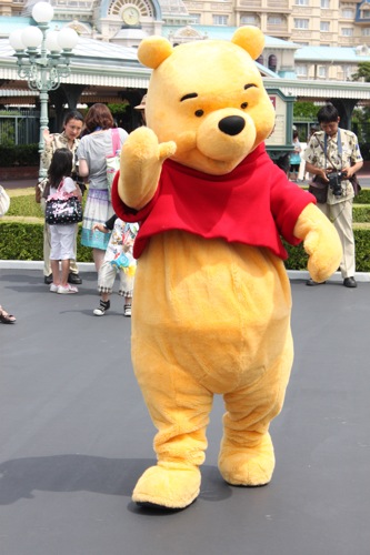 「くまさんはおなかがすいたので、はちみつを食べに行ってきます」と戻って行くプーさんをパチリ。あの着ぐるみは相当暑いだろうから、交代に行くんでしょうね。