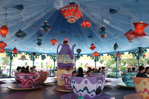 姪はまだ小さいので、コースター系のアトラクションには乗れませんから、コーヒーカップやらメリーゴーランドやら小さな子供対象のアトラクションにたくさん乗りました。今まで何度かディズニーランドに行ったことはありますが、こういうアトラクションは見向きもしていなかったので、新鮮に感じました。