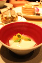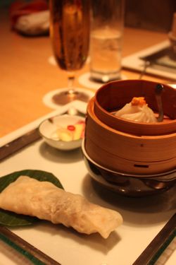メニューは前菜盛り合わせ(叉焼、中華クラゲ、棒棒鶏、生春巻き?)、フカヒレの姿煮、北京ダックと小龍包、白身魚のフィレ、大車海老シャンパンマヨネーズソース、牛サーロインステーキ、海鮮炒飯、杏仁豆腐だったと思います。白身魚と大車海老はどちらか一つを選ぶのですが、妹とひとつずつ選び両方楽しみました。