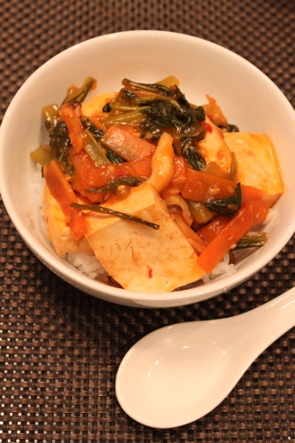 ちなみに豆腐と青菜のどんぶりはタニタのレシピ。