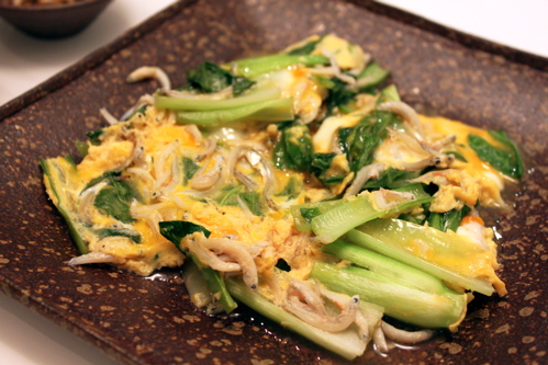 小松菜としらすの卵とじ。