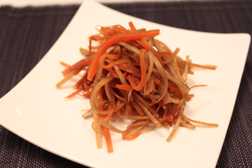 きんぴらごぼう。お弁当用に作っておいたものを少し出しました。