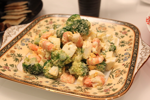 先日のパーティーで作ったえびとブロッコリーのデリサラダ。