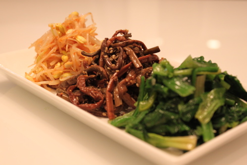 手前からほうれん草、ぜんまい、もやしのナムルです。
