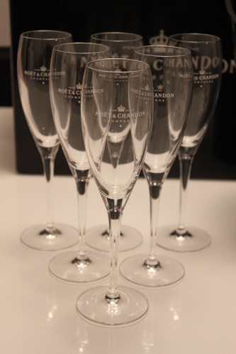 モエ・エ・シャンドンのロゴ入りのシャンパングラス6脚。