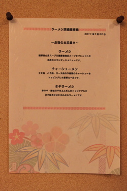 ラーメンもスープと麺は1種類にして、トッピングを変えて3種類ご用意しました。