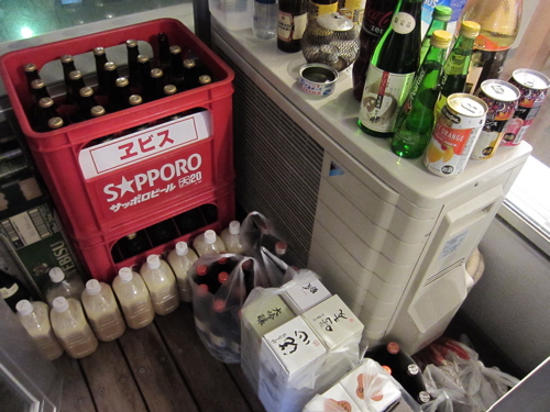 用意したお酒は、覚えている限りでヱビスビール大瓶2ケース(40本)、ヱビスビールホップ24缶、日本酒4合びん10本以上、ホッピー、チューハイ・カクテル10缶、ソフトドリンク(コカコーラ、アクエリアス、ジンジャーエール各2l)、炭酸ジュース3本、白ワイン1本、赤ワイン2本、焼酎5本。