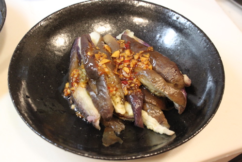 蒸しなすの香味だれ。