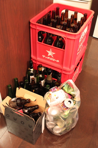 後に残った空き瓶と空き缶。
