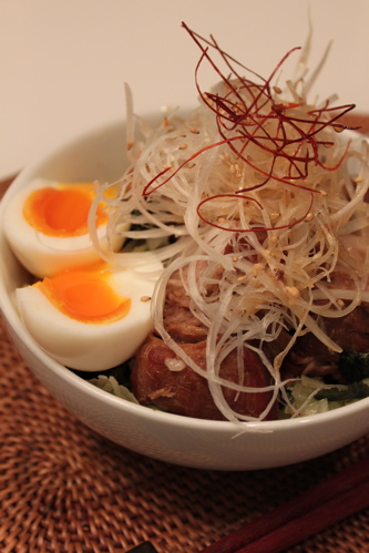 新年会前に大量のチャーシューを仕込んだ時、彼がチャーシュー丼を作ってくれました。