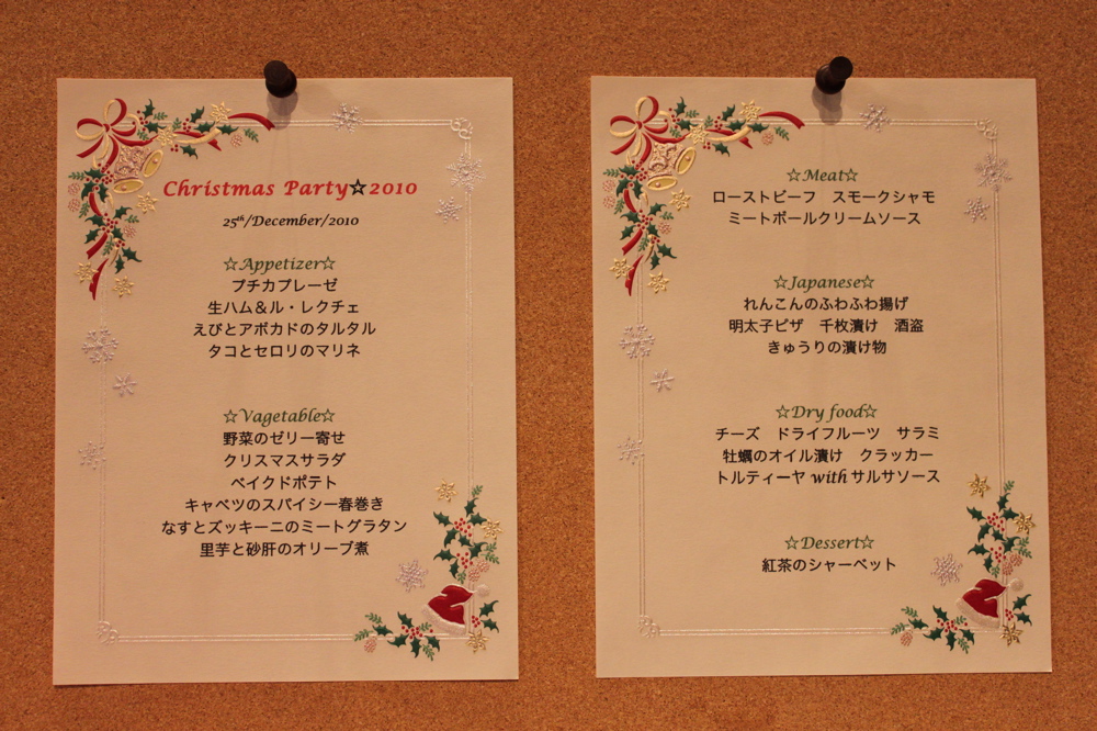 さぁ来月は大人を対象に大新年会を企画しています。次回は今回とはうってかわって「和」のおもてなしを考えています。クリスマスパーティーのメニューを考えながらも次々と新年会用のメニューが浮かんできて、今から楽しみでなりません。